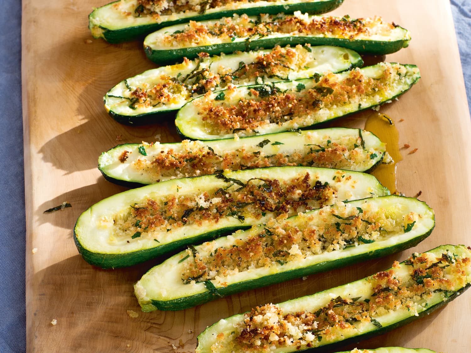 Roasted Zucchini Stuffed With Parmesan Garlic Breadcrumbs