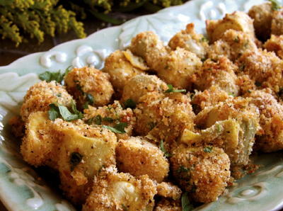 Drizzle with olive oil and season with salt and pepper. Artichoke hearts dipped in garlicky butter and coated with parmesan breadcrumbs. 1 teaspoon lemon zest.